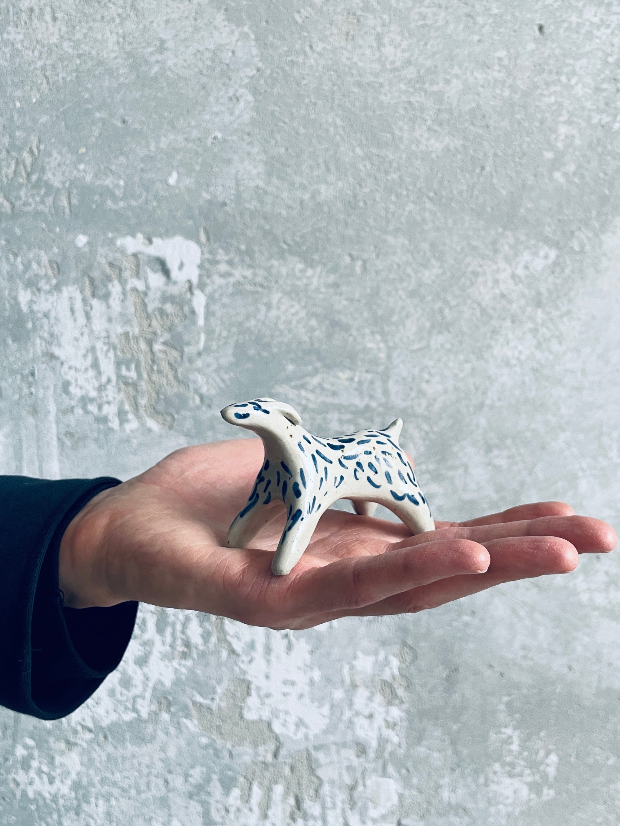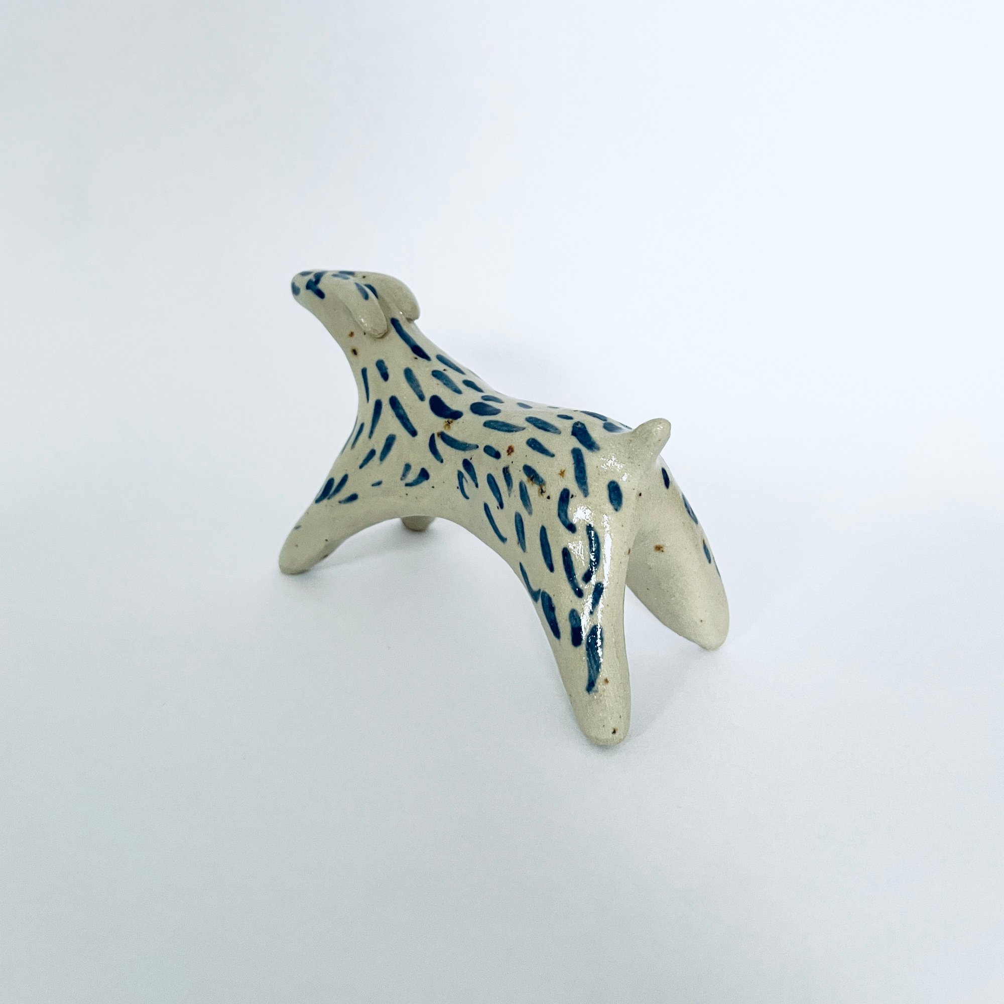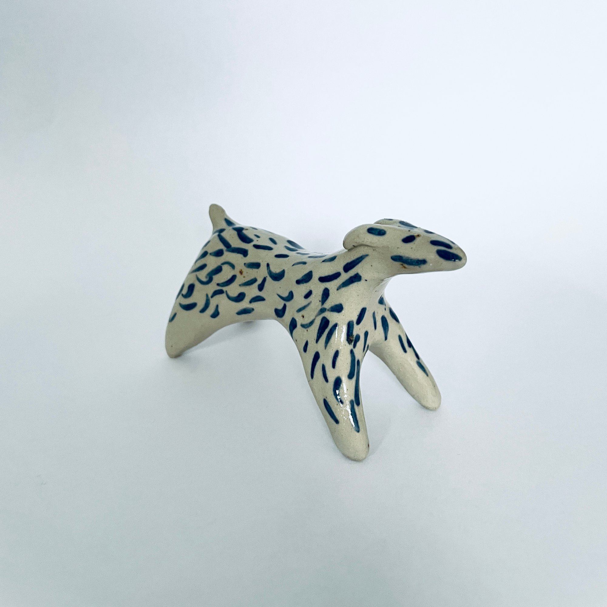Ulepiona z beżowej gliny, malowana kobaltem, szkliwiona transparentnym szkliwem.